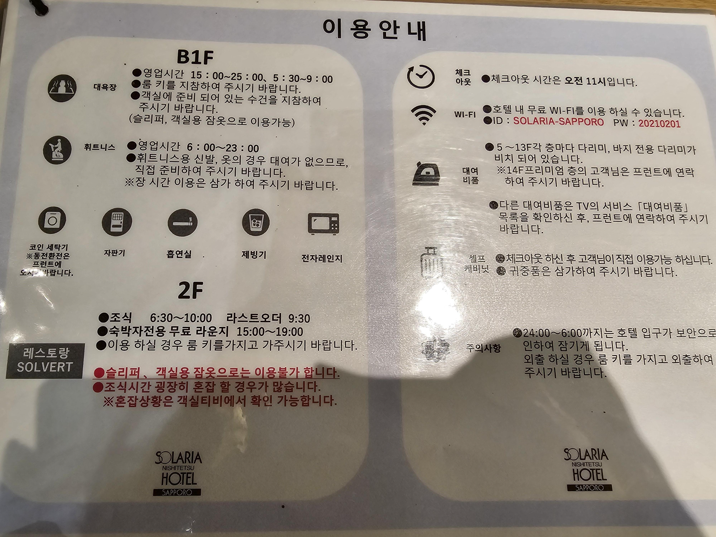 호텔 내에 지하 1층 대중탕과 자판기, 코인세탁기가 있습니다.