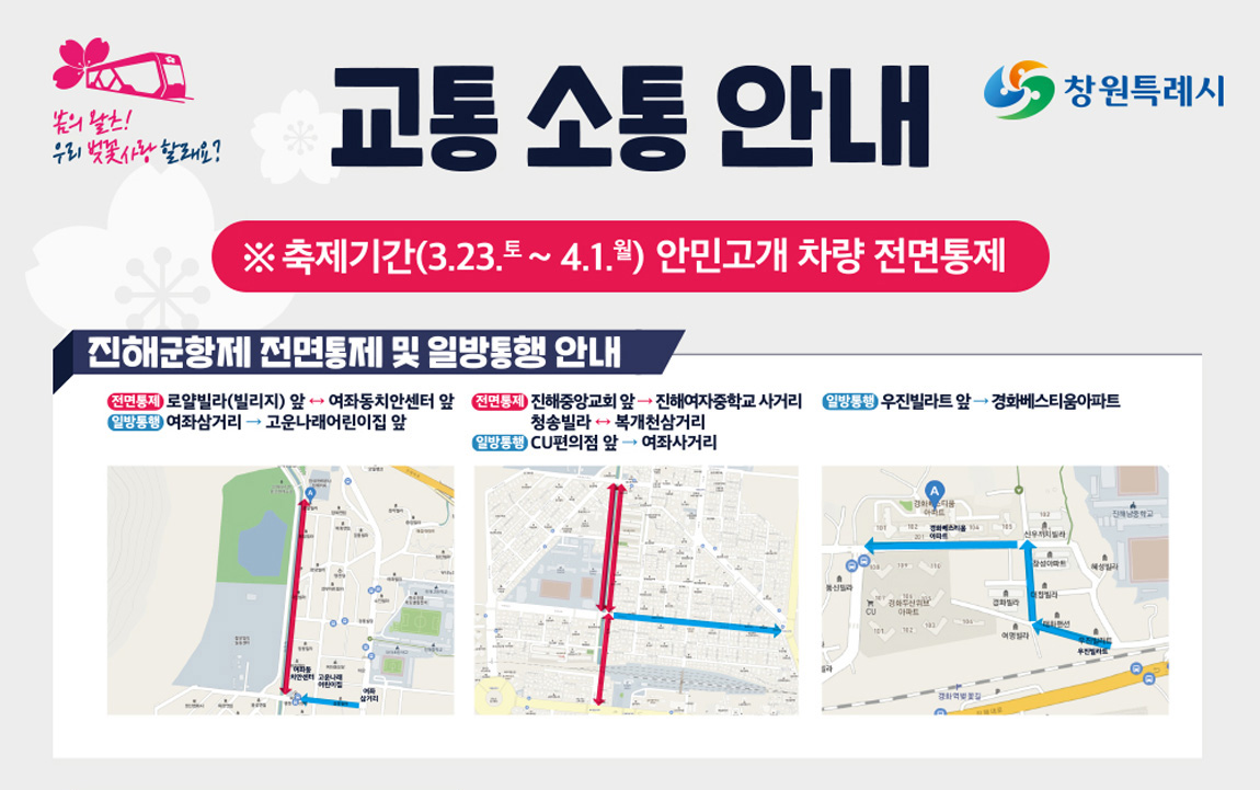 - 장소: 창원시 진해구 중원로터리 및 진해루 (여좌천, 중원로터리, 진해공설운동장)
