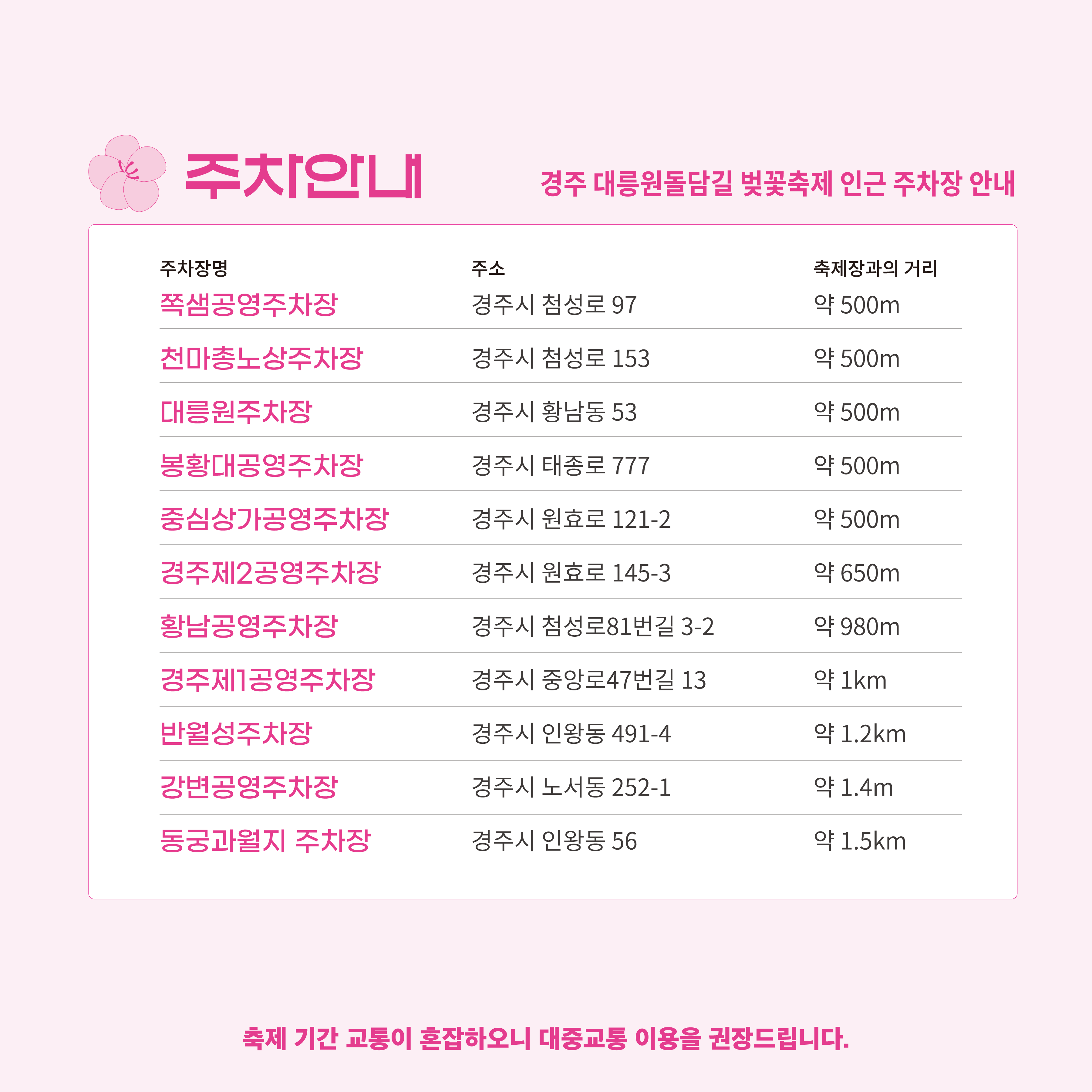 • 2024년 경주 대릉원돌담길 벚꽃축제 기간: 2024.03.29 ~ 03.31